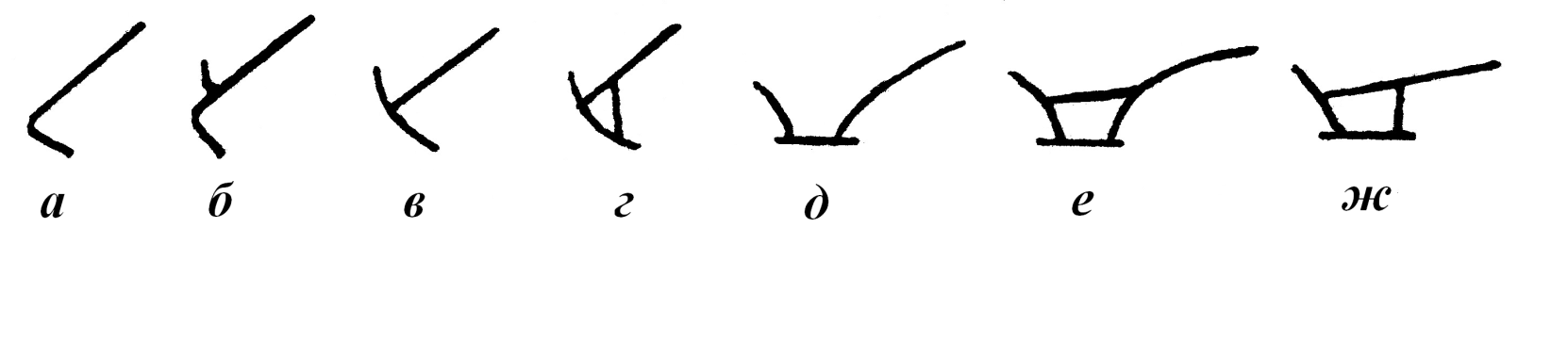 Трудности с подбором дерева с необходимой прочностью и нужным расположением сучьев привели к изготовлению плуга из двух элементов (рис.1.1г) представляют собой уже орудия, прошедшие через века - рало (рис.1.3а), коловую соху (цапугу) (рис.1.3б) и великорусскую соху (рис.1.3в).