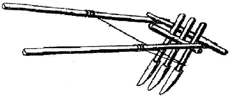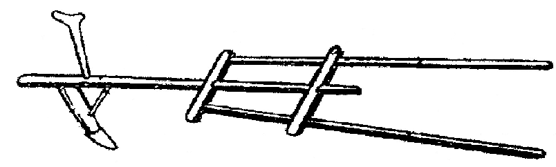 Для повышения устойчивости плуга со временем стали подбирать такой ствол дерева, у которого помимо сука, используемого для крошения, был бы еще сук, направленный вверх для управления ходом орудия (рис.1.1б). Изображения таких орудий найдены на римских и греческих памятниках времен Юлия Цезаря.