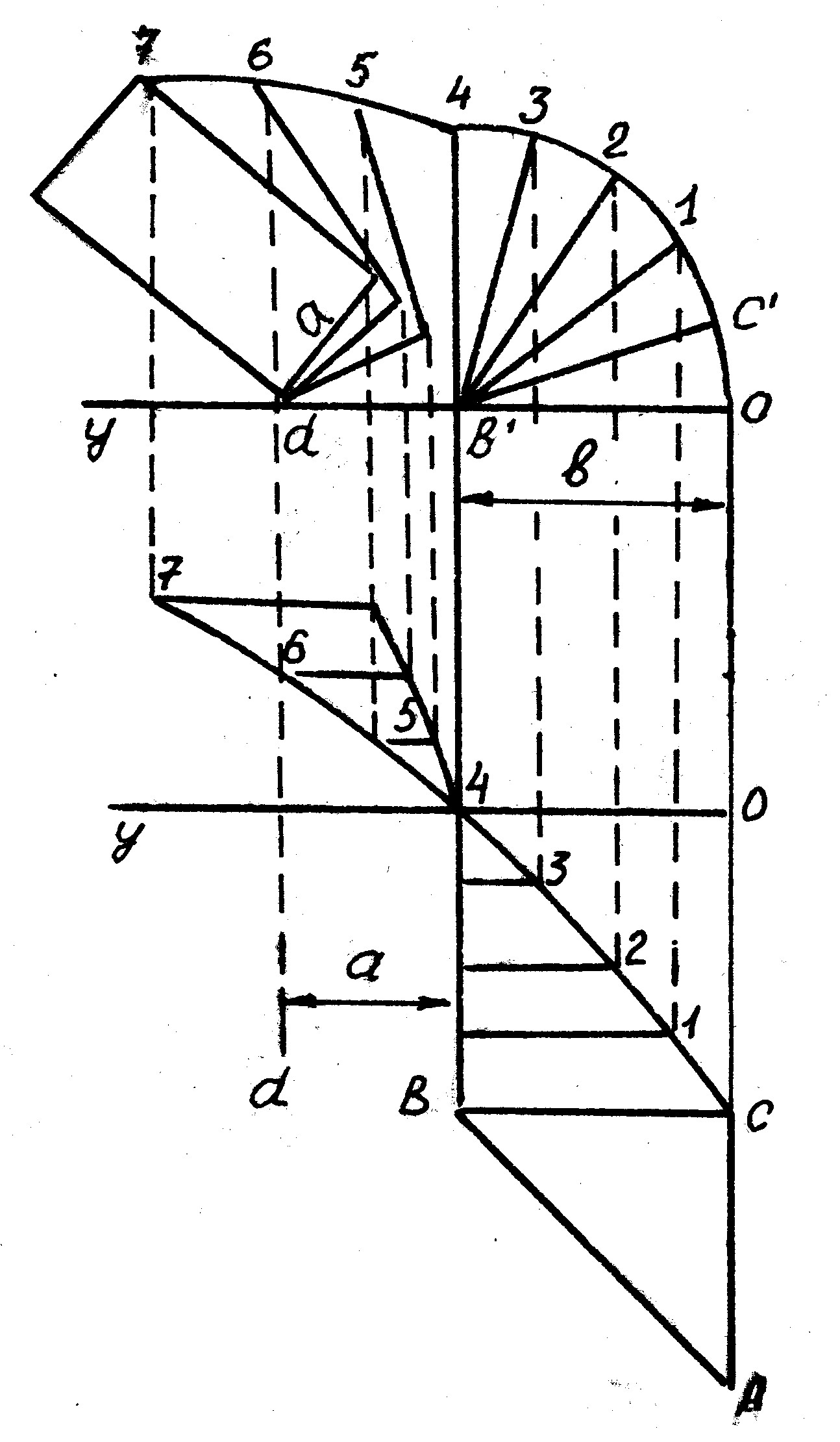 В 1832 г. итальянские аббаты Лямбручини и Ридольфи предложили использовать для отвала поверхность, состоящую из двух геликоидов, соответствующих вращению пласта вокруг разных ребер (рис.1.6, 1.7). Отвалы винтового типа не обеспечивают качественного крошения пласта. В 1827 г. братья Ваверки из Богемии предложили использовать цилиндрическую (рухадловую) поверхность (рис.1.8).