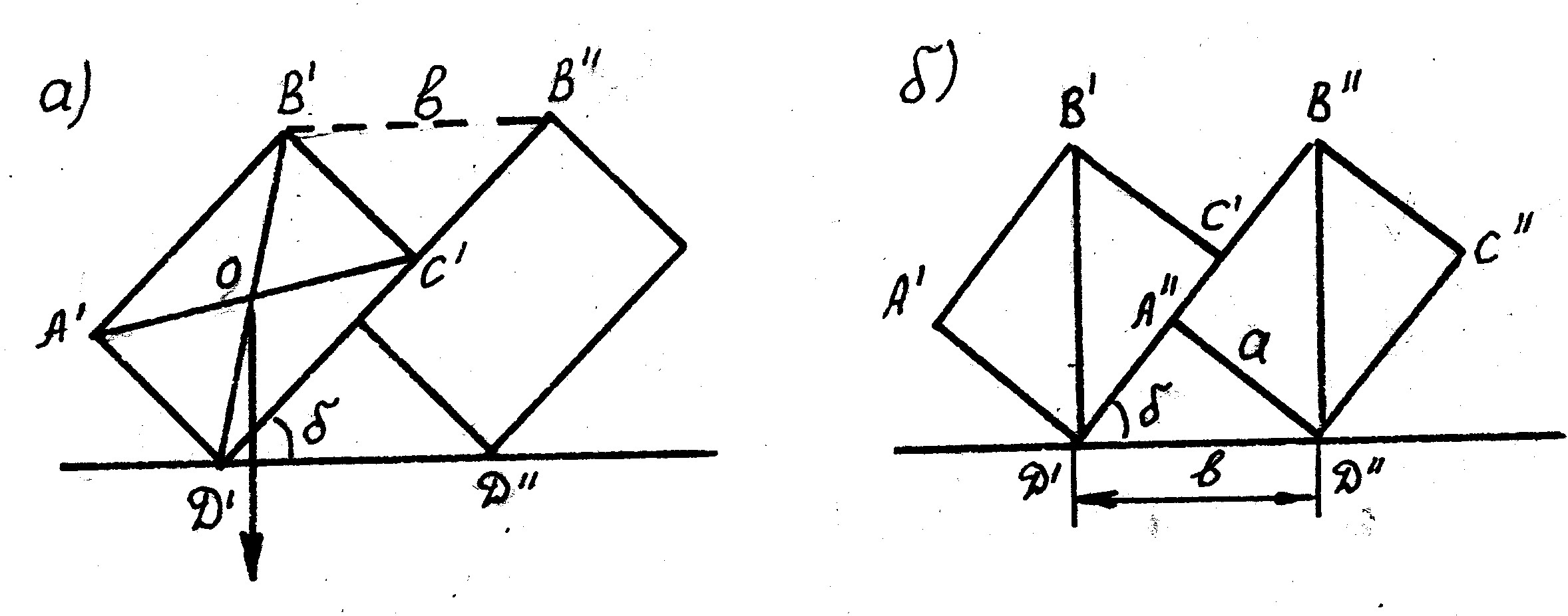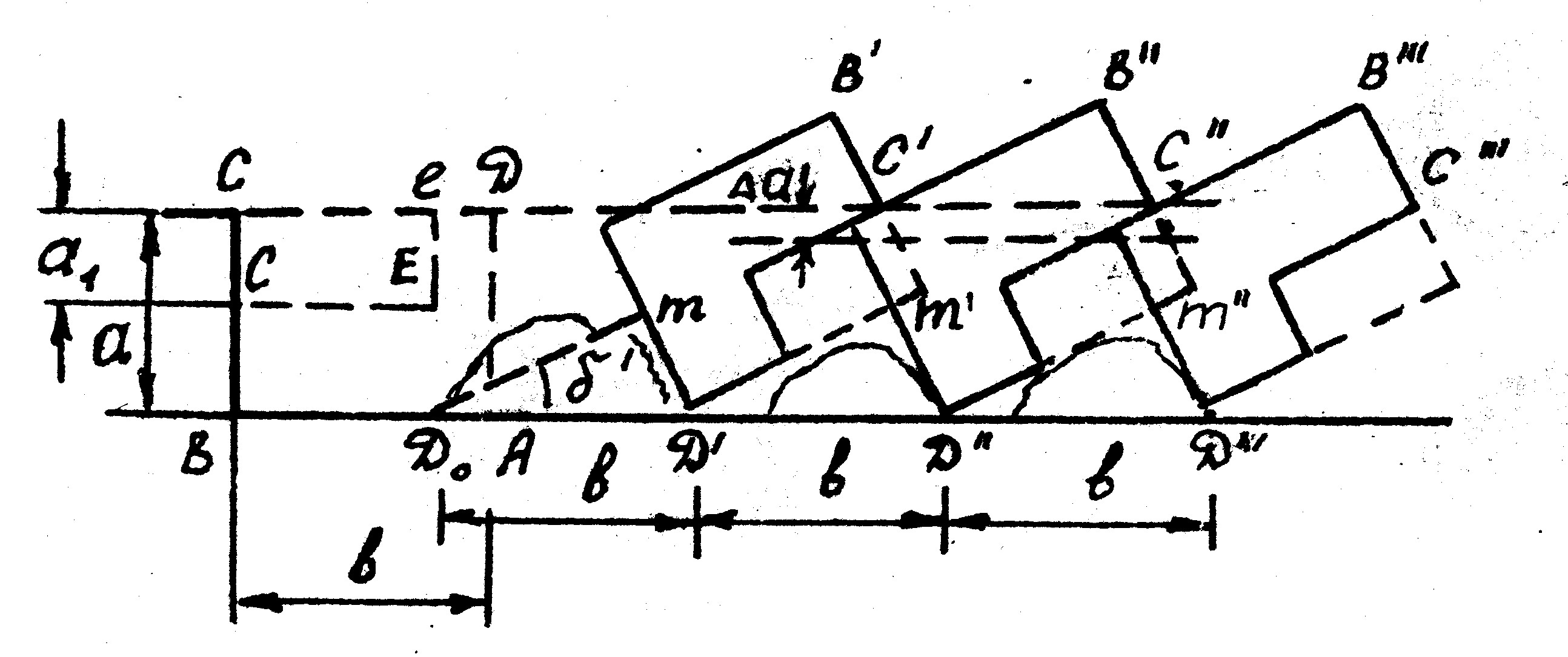 Если считать, что при обработке геометрическая форма пласта не изменится, то пласт АВСД (рис. 1.14) после поворота сначала вокруг грани А, а затем Д будет уложен на ранее отваленные пласты под углом δ к горизонту.