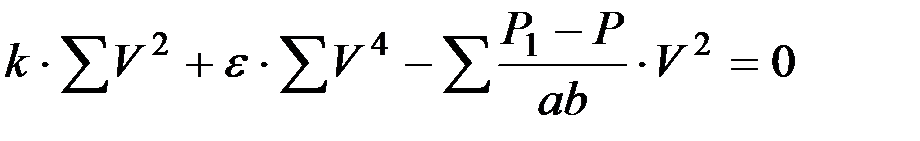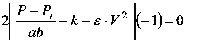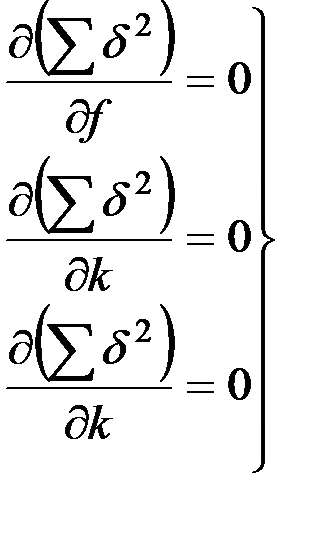 В этом уравнении неизвестными являются коэффициенты f, k, ε, а все остальные величины должны быть зафиксированы при проведении эксперимента. Известно, что минимальное значение функции определяют путем приравнивания нулю первой производной. Для отыскивания минимума функций трех переменных необходимо приравнять нулю частные производные по всем переменным и составить систему из трех уравнений: