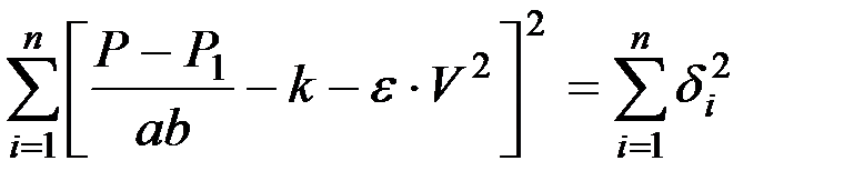 Для определения формулы необходимо определить коэффициенты. Наиболее точно она могут быть найдены после многократных опытов по динамометрированию плуга в поле на различных скоростях при изменяемой глубине пахоты. После этого экспериментальные данные обрабатывают по так называемому способы наименьших квадратов, суть которого состоит в том, что наиболее вероятными значениями f,k и ε будут те, которые приведут к минимальным значениям сумму квадратов разности между расчетными и опытными данными. В каждом опыте между экспериментальным значением Р и расчетной величиной, определяемой уравнением (2.4), будет обнаружено некоторое отклонение δ, т.е.