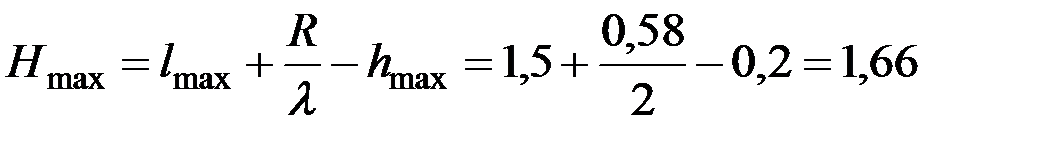 Кинематический показатель l при нормальных условиях работы равен 1,5…1,7, пусть l = 1,6. DН – минимальный зазор между планкой и ножом, DН = 2..3 см.