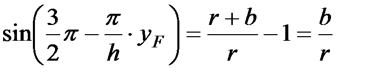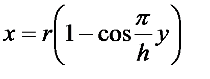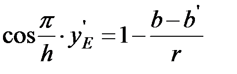 Чтобы определить координату уЕ точки Е, необходимо заметить, что ветвь косинусоиды СЕ является такой же, что и косинусоиды, выходящей из начала координат О, но сдвинутой вверх на высоту сегмента h' и вправо на r+b', где b' ‑ половина верхнего основания сегмента. Если за начало этой косинусоиды принять точку О', то косинусоида СЕ будет записана в той же форме, что и выходящая из точки О, т. е.
