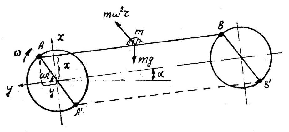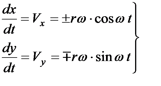 Отсчет угла поворота коленчатого вала производится от оси OY в направлении его вращения. Если w ‑ угловая частота вращения вала, то угол wt определит положение клавиши, соответствующее некоторой точке А. Координаты этой точки, очевидно, будут следующие: