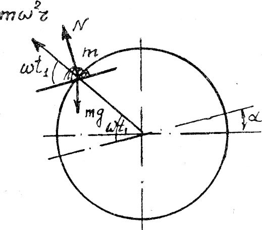 Хлебная масса m, лежащая на поверхности клавиши и участвующая вместе с поверхностью в круговом движении, будет находиться под действием центробежной силы mw2r и силы тяжести mg. От величины соотношения этих сил будет зависеть характер движения соломы. Если mw2r/mg будет меньше единицы, то масса не сможет оторваться от поверхности и будет двигаться лишь вместе с клавишей. При значении этого отношения, превышающем единицу, возможен отрыв массы от поверхности соломотряса. Вследствие этого данное отношение k считают основной кинематической характеристикой соломотряса: