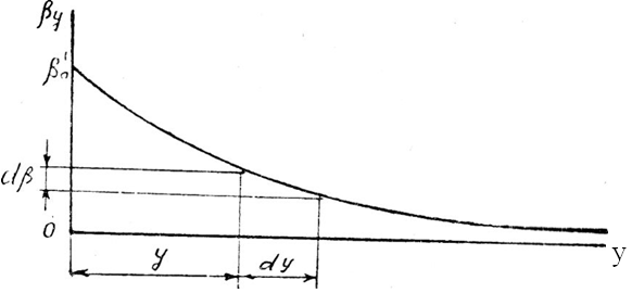 При решетчатой деке через подбарабанье пройдет часть общей массы зерна в количестве b (b = 70...80%). В этом случае содержание зерна в соломе на выходе соломотряса уменьшится: b0¢ = b0×(100 - b)/100. Содержание зерна в соломе непрерывно изменяется от начала соломотряса к его концу, т. е. by = f(у). Графически эту закономерность можно изобразить в виде кривой (рис. 9).