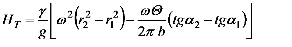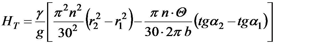 Величина теоретического напора НТ по уравнению Эйлера, несколько ранее получила такую зависимость (2)