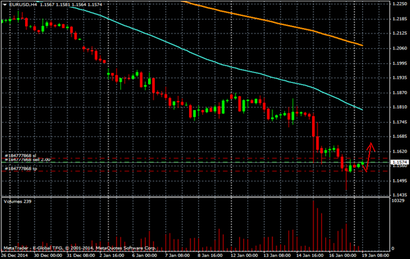 Грандиозное падение пары евро/доллар многих повергло в ступор. Однако не стоит забывать о защитных стоп приказах (которые сохранят вам депозит). Так например пара доллар/франк показала падение более 1000 пунктов за 5 минут, в связи с повышением ставок в Швейцарии. В связи с этим стоит помнить, что только тот кто имеет стоп лоссы и систему торговли может выдержать удар рынка и в перспективе заработать. Сегодня рынок достаточно спокойный и никаких серьезных фундаментальных новостей не ожидается. В рамках технического отката пара может показать рост к отметки 1,1650. Первую половину дня ожидается снижение пары на 1,1540, после чего на вечерней сессии вновь может возобновиться рост.