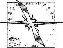 лин, транспортных путей и др. Длина (Ь.) каждого луча розы-диаграммы 1-го азимута пропорциональна суммарной длине линейных элементов того же азимута: -Ф,, У=1