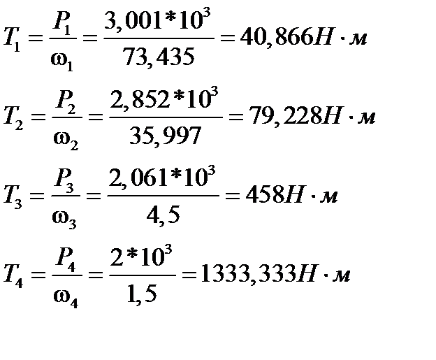 9. Определение крутящих моментов на всех валах