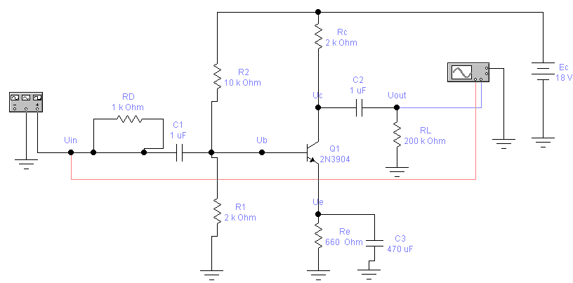 Схемаработы транзистора в режиме усилителя с ОЭ: