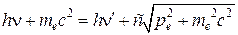 Все особенности эффекта Комптона можно объяснить, рассматривая рассеяние как процесс упругого столкновения рентгеновских фотонов с практически свободными электронами. Свободными можно считать слабее всего связанными с атомами электроны, энергия связи которых значительно меньше энергии, которую может передать фотон электрону при соударении. Пусть на первоначально покоящийся свободный электрон падает фотон с энергией h n и импульсом