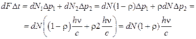 Если на площадку падает общее число фотонов dN, то число dN 1 отраженных фотонов равно: dN 1 = r dN, (6.4.1) а число dN 2 поглощенных фотонов равно: dN 2 = (1–r) dN. (6.4.3) Каждый поглощенный фотон передает площадке dS импульс