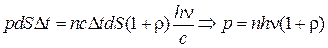 где n – концентрация фотонов в падающем пучке; dV = c D tdS – объем в котором содержатся фотоны, успевающие за время D t достигнут площадки dS. Согласно второму закону Ньютона изменение импульса фотонов равно импульсу