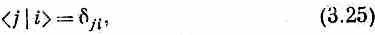 где dij («символ Кронекера») — символ, равный по определению нулю при i¹j и единице при i = j. • Уравнение (3.25) не независимо от остальных законов, о которых мы упоминали. Бывает, что нас не особенно интересует математическая задача поиска наименьшей совокупности независимых аксиом, из которых все законы проистекут как следствия. Нам вполне достаточно обладать совокупностью, которая полна и по виду непротиворечива. Однако мы беремся показать, что (3.25) и (3.24) не независимы. Пусть j в (3.24) представляет одно из базисных состояний той же совокупности, что и i, скажем j-e состояние; тогда мы имеем