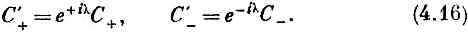 Очень курьезно вдруг обнаружить, что поворот прибора на 360° приводит к новым амплитудам. Но на самом деле они не новы, потому что одновременная перемена знака ни к какой новой физике не приводит. Если кто-нибудь задумает переменить все знаки у всех амплитуд, подумав, что он повернулся на 360°, то это его дело — физику он получит ту же, прежнюю. Итак, наш окончательный ответ таков: если мы знаем амплитуды С+ и С- для частиц со спином 1/2 по отношению к системе отсчета S и если затем мы используем базисную систему, связанную с Т (Т получается из S поворотом на j относительно оси z), то новые амплитуды выражаются через старые так: