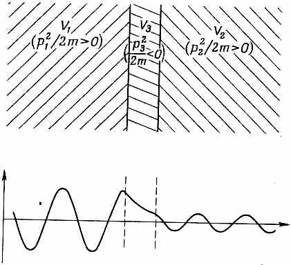 Фиг. 5.5. Проникновение амплитуды сквозь потенциальный барьер.