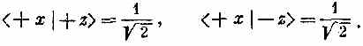 Но если нам известны C+(t) и C-(t), то у нас есть все, чтобы знать условия в момент t. Надо преодолеть только еще одно затруднение: нужна-то нам вероятность того, что спин (в момент t)окажется направленным по + х. Но наши общие правила учитывают и эту задачу. Мы пишем, что амплитуда пребывания в состоянии (+x) в момент t [обозначим ее A+ (t)]есть