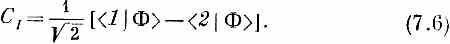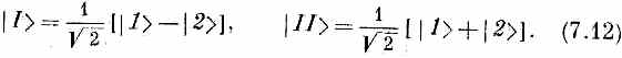 Эта амплитуда есть проекция состояния |Ф> на новое состояние | I >, обладающее амплитудами противоположного знака, для пребывания в состояниях |1> и |2>. А именно (7.6) означает то же самое, что и