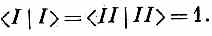 а это, конечно, равняется просто единице, поскольку и |1>, и |2>суть базисные состояния. И амплитуда обнаружения состояния |II> в состоянии \2у тоже равна единице, так что у состояния |II> одинаковы амплитуды оказаться в каждом из базисных состояний |1> и |2>. Но тут всплывает новая трудность. У состояния | II > полная вероятность оказаться то ли в одном базисном состоянии, то ли в другом получается больше единицы. Но это всего лишь означает, что вектор состояния неудачно «отнормирован». Чтобы исправить дело, надо вспомнить, что всегда для любого состояния обязано быть < II | II >=1. Использовав общее соотношение