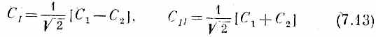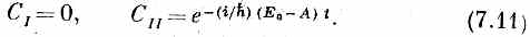 Амплитуды СI =< I |Ф> и С II =< II |Ф> того, что любое состояние |Ф> окажется в одном из наших новых базисных состояний | I > и | II >, обязаны также удовлетворять гамильтонову уравнению вида (6.39). И действительно, если мы просто вычтем друг из друга два уравнения (7.2) и (7.3) и продифференцируем по t, то убедимся, что
