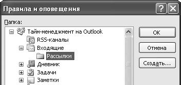 6. В появившемся окне «Правила и оповещения» выберите папку «Рассылки» и нажмите «ОК».