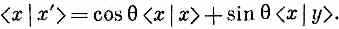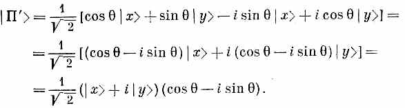 Как же будет выглядеть такое состояние в системе х, у? Подставим | х' > из (9.33) и соответствующее | у' >; мы его не выписывали, но оно равно (-sinq)| x >+(cosq)| y >. Тогда