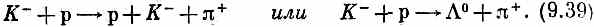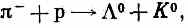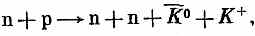 Если бы здесь вместо К 0стояло К°, то странность справа была бы -2, чего природа не позволит, ведь слева странность нуль. С другой стороны, К° может возникать в других реакциях: