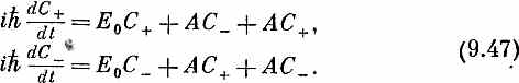 очем мы уже говорили выше. Итак, у нас есть две дополнительные амплитуды , обе равные А, которые надо вставить в уравнения Гамильтона. Первая приводит к слагаемому АС+ в правой части уравнения для dC+/dt, а вторая — к слагаемому АС- в правой части уравнения для dC-/dt. Рассуждая именно так, Гелл-Манн и Пайс пришли к заключению, что уравнения Гамильтона для системы