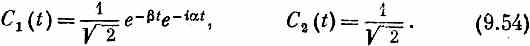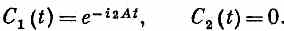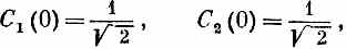 где С 1(0) и С 2(0) — амплитуды при t= 0. Эти уравнения говорят, что если нейтральный K -мезон при t= 0 находится в состоянии | К 1> [так что С 1(0)=1 и С2(0)=0], то амплитуды в момент t таковы: