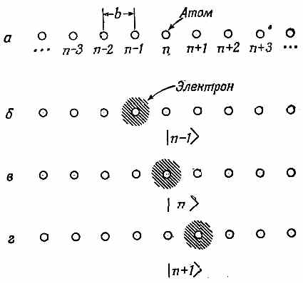 Фиг. 11.1. Базисные состояния электрона в одномерной решетке.