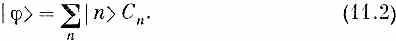 С помощью этих наших базисных состояний можно описать любое состояние |j> нашего одномерного кристалла, задав все амплитуды < n |j> того, что состояние |j> находится в одном из базисных состояний, т. е. амплитуду того, что электрон расположен близ данного частного атома. Тогда состояние |j> можно записать в виде суперпозиции базисных состояний: