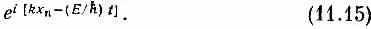 Волна может двигаться либо к положительным, либо к отрицательным х, смотря по тому, какой знак выбран для k. Заметьте, что мы предположили, что поставленное в нашем пробном решении (11.10) число k есть число вещественное. Теперь видно, почему в бесконечной цепочке атомов так и должно быть. Пусть k было бы мнимым числом — ik'. Тогда амплитуды аn менялись бы, как Соотношение (11.13) между энергией Е и волновым числом k изображено на фиг. 11.3.