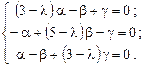 Здесь третье уравнение совпадает с первым и может быть отброшено. (Так и должно быть, поскольку определитель системы уравнений равен нулю.) Сложив оставшиеся уравнения, получим В итоге, подставив все корни и проделав необходимые вычисления, имеем: