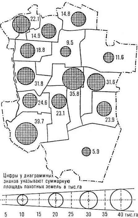 Рисунок 25 – Способ картодиаграмм (непрерывная шкала) Пример 3. Пусть величины изменяются от 5 до 5 000. В этом случае выберем условную ступенчатую шкалу. Все значения ряда чисел разделим на несколько групп («ступеней») и каждой ступени присвоим определенный размер знака (высоту квадрата, прямоугольника или радиусокружности). ЛИТЕРАТУРА 1. Картография с основами топографии: в 2 ч. / А.В. Гедымин [и др.]; под ред. А.В. Гедымина. – М.: Просвещение, 1973. – Ч. 1. Понятие о топографической карте. Топографическая карта. Съемка местности / А.В. Гедымин [и др.]; под ред. А.В. Гедымина. – 1973.– 160 с. 2. Картография с основами топографии: учеб. пособие / Г.Ю. Грюнберг [и др.]; под ред. Г.Ю. Грюнберга. – М.: Просвещение, 1991. – 368 с. 3. Колосова, Н.Н. Картография с основами топографии: учеб. пособие / Н.Н. Колосова, Е.А. Чурилова, Н.А. Кузьмина. – М: Дрофа, 2006. – 272 с. 4. Комиссарова, Т.С. Картография с основами топографии: учебник / Т.С. Комиссарова. – М: Просвещение, 2001. – 181 с. 5. Курдин, С.И. Лабораторный практикум по картографии с основами топографии / С.И. Курдин. – Минск: УП «Экоперспектива», 2003. – 206 с. 6. Соломко, А.В. Картография с основами топографии / А.В. Соломко. – Минск: Университетское, 2000. – 358 с. 7. Романкевич, А.П. Топография с основами геодезии: Курс лекций / А.П. Романкевич, П.П. Явид. – Минск: БГУ, 2004. – 312 с. 8. Условные знаки для топографических планов масштабов 1: 5 000, 1: 2 000, 1: 1 000, 1: 500 / Главное управление геодезии и картографии при Совете Министров СССР. – М.: Недра, 1989. – 286 с. 9. Фокина, Л.А. Картография с основами топографии: учеб. пособие / Л.А. Фокина. – М.: Гуманит. изд. центр ВЛАДОС, 2005. – 335 с. 10..Южанинов, В.С. Картография с основами топографии / В.С. Южанинов. – М.: Высшая школа, 2001. – 302 с.