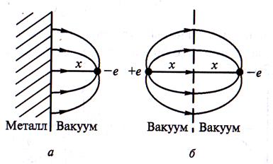 а – поле системы электрон–металл б – поле, создаваемое электроном и его зеркальным изображени- ем