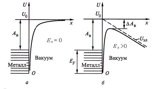 Суммарную потенциальную энергию электрона, находящегося вблизи поверхности металла, помещённого в электрическое поле, можно представить как U = Uиз + UЭЛ = Uo