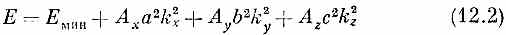 Разные A — это амплитуды прыжков в направлениях х, у и z, а а, b, с — это постоянные решетки (интервалы между узлами) в этих направлениях. Для энергий возле дна зоны формулу (12.1) можно приблизительно записать так: