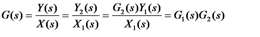 Последовательное соединение показано на рис. 1.11. Согласно определению передаточная функция есть отношение образов выхода и входа, поэтому