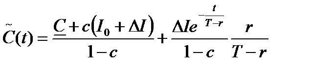 Таким образом, введение акселератора в контур обратной связи с динамической моделью Кейнса приводит к тому же значению ВВП в установившемся режиме, что и в отсутствие обратной связи. При этом сходимость к данному значению происходит быстрее, поскольку Т – r < Т Однако ускорение сходимости достигается за счет сокращения потребления в начале переходного периода. В самом деле, потребление в переходный период без введения акселератора имеет вид: