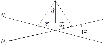 Рис.2. Звідси видно, що різними будуть і яскравості обох полів порівняння. Яскравості полів стануть однаковими, якщо площину коливань світлового вектора а встановити симетрично відносно напрямків N1 i N2. Це здійснюється переміщенням клина компенсатора.