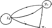 Рисунок 9. Вихідні графи. X1 = { x1, x2, x3 }; X2 = { x1, x2 }; F (x1) = { x2 }; F2 (x1) = { x1 }; F (x2) = F (x3) = { x1, x2 }; F2 (x2) = { x1, x2 }. Знаходимо, що X = X1 U X2 = { x1, x2, x3 }; F = F1 U F2; F (x1) = F (x2) = F (x3)={ x1, x2 }. Геометричне зображення графа G (X, F):