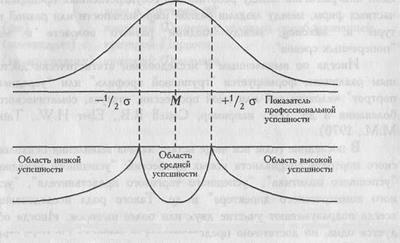 (30,9% испытуемых) (38,2% испытуемых) (30,9% испытуемых) Рис 2.1. Схематическое изображение процесса разделения выборки на группы с низкой, средней и высокой профессиональной успешностью На Рис. 2.1 представлена схема разделения выборки на группы с низкой, средней и высокой профессиональной успешностью по критерию отклонения значений от средней величины на 1/2 стандартного отклонения. При таком строгом критерии в "среднюю" группу попадают (при нормальном распределении) около 38,2% всех испытуемых, а в крайних группах оказывается по 30,9% испытуемых. Чем меньше испытуемых оказывается в группах, тем меньше у нас возможностей для выявления достоверных различий, так как критические значения большинства критериев при малых п строже, чем при больших п. Таким образом, при нестрогом разделении испытуемых на группы мы теряем в точности, а при строгом - в количестве испытуемых. При решении задач выявления различий в уровневых показателях следует помнить, что "усредненный профиль успешного специалиста" должен рассматриваться скорее как исследовательский результат, позволяющий сформулировать гипотезы для дальнейших исследований, а не как основание для профессионального отбора. Тому есть две причины. Во-первых, ни у одного из успешных специалистов может не наблюдаться "усредненный профиль" - он, в сущности, является отвлеченным обобщением; во-вторых, в профессиональной деятельности наличие собственного индивидуального стиля важнее соответствия "среднегрупповому" профилю. Недостаток в тех качествах, которые могут казаться важными, компенсируется другими качествами. У каждого успешного специалиста его психологические свойства создают неповторимый ансамбль, который при усреднении данных теряется. Р.Б. Кеттелл, учитывая это, предлагал при исследовании профессиональной успешности включать в рассмотрение индивидуальные профили выдающихся представителей той или иной профессии (Cattell R.B., Eber H.W., Tatsuoka М.М., 1970). Сопоставление уровневых показателей в разных выборках может быть необходимой частью комплексных диагностических, учебных, пси-хокоррекционных и иных программ. Оно помогает нам обратить внимание на те особенности обследованных выборок, которые должны быть учтены и использованы при адаптации программ к данной группе в процессе их конкретного воплощения. Критерии, которые рассматриваются в данной главе, предполагают, что мы сопоставляем так называемые независимые выборки, то есть две или более выборки, состоящие из разных испытуемых. Тот испытуемый, который входит в одну выборку, уже не может входить в другую. В противоположность этому, если мы обследуем одну и ту же выборку испытуемых, несколько раз подвергая ее аналогичным измерениям ("замерам"), то перед нами - так называемые связанные, или зависимые, выборки данных. Сопоставление 2-х или более замеров, полученных на одной и той же выборке, рассматривается в Главе 3. Решение о выборе того или иного критерия принимается на основе того, сколько выборок сопоставляется и каков их объем (см. Алгоритм 7 в конце главы).
