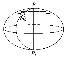 Если взять на глобусе (рис. 3.1) бесконечно малый кружок с центром в точке и радиусом , то при развертке на плоскость он изобразится каким-то эллипсом, который называют эллипсом искажений.
