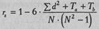 где а - объем каждой группы одинаковых рангов в ранговом ряду А, b - объем каждой группы одинаковых рангов в ранговом ряду В. В данном случае, в ряду А (эталонный профиль) присутствует одна группа одинаковых рангов - качества "обучаемость" и "гуманизм" имеют один и тот же ранг 12,5; следовательно, а =2. Tа=(23-2)/12=0,50. В ряду В (индивидуальный профиль) присутствует две группы одинаковых рангов, при этом b1=2 и b2=2. Ta=[(23-2)+(23-2)]/12=1,00 Для подсчета эмпирического значения rs используем формулу