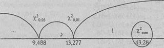 Определим критические значения χ2по Таблице IX Приложения 1 для v =4: