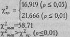 Критические значения определяем по Табл. IX Приложения 1, поскольку при больших п χ2 r имеет распределение, сходное с распределением χ2, а существующие таблицы χ2 r предназначены только для n ≤9. Количество степеней свободы определим так же, как мы это делали при расчете критерия χ2: v =(k -l)(c-l)=(4-l) (4~l)=3·3=9 При v =9 критические значения χ2 r составляют: