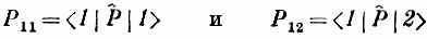 суть матричные элементы, которые получаются, если Р^ |1 > и Р^|2 >умножить слева на < 1 |. Согласно уравнению (15.1), они равны