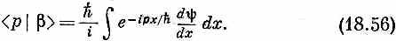 Теперь сравним это с (18.53). Может быть, вы подумали, что < x |b> равно p y(x)? Нет, напрасно! Волновая функция < х |b>=b(x) может зависеть только от х, но не от р. В этом-то вся трудность. К счастью, кто-то заметил, что интеграл в (18.55) можно проинтегрировать по частям. Производная e -ipx/h по х равна (-i/h)pe-ipx/h, поэтому интеграл (18.55) это все равно, что